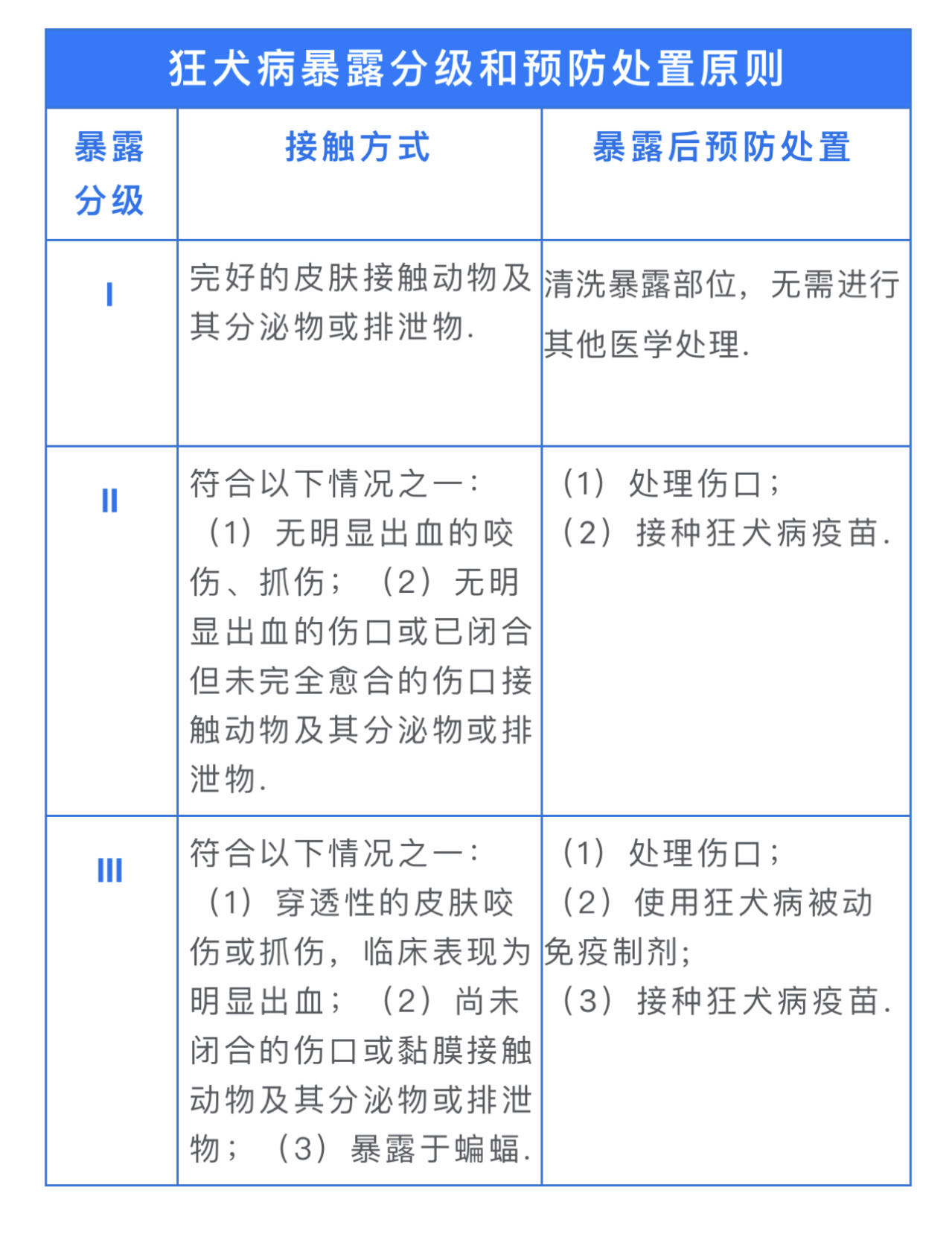 第一步我们需要判断伤口的严重程度,也就是暴露分级,第二步,根据伤口暴露分级,确定如何处置。请看下表: