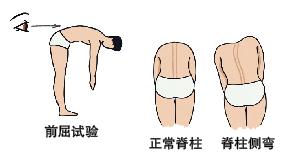当发现以上情况时,我们可以进一步进行Adams前屈试验,这是脊柱侧弯的国际金标准筛查法。具体做法是:让受检者背向检查者站立,双腿伸直并拢,双手掌心相对自然下垂,然后缓慢向前弯腰至背部与地面平行,检查者从后方视线与背部齐平观察。